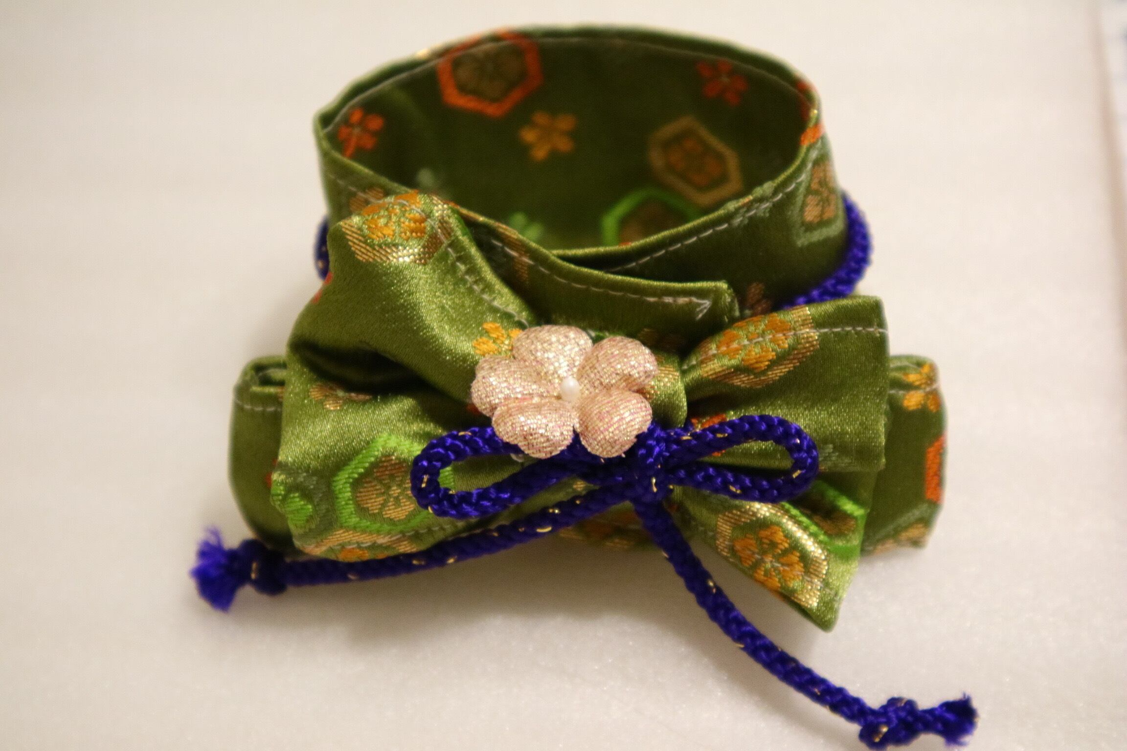頭につけるリボンは帯とお揃いの生地で作成いたします。