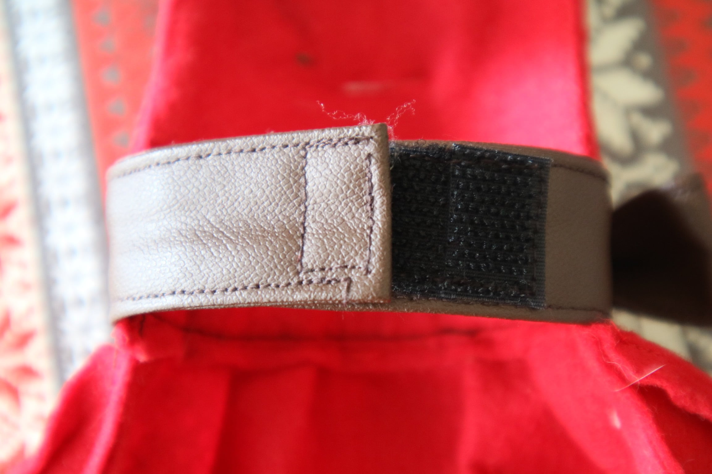 首周りのファーとベルトのマジックテープは