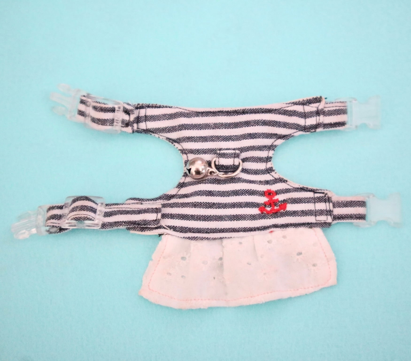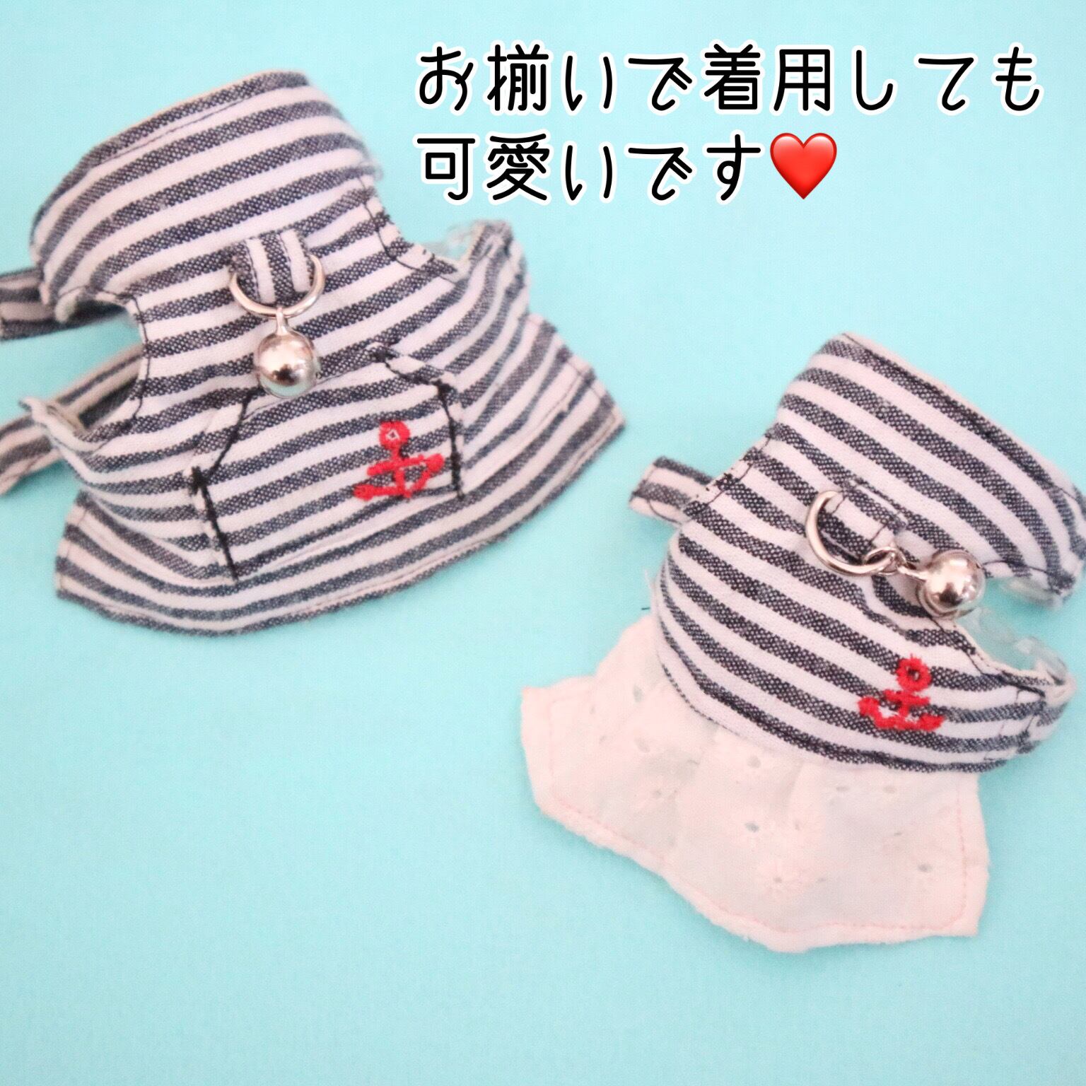 夏っぽいボーダーにレースが可愛いハーネスです。